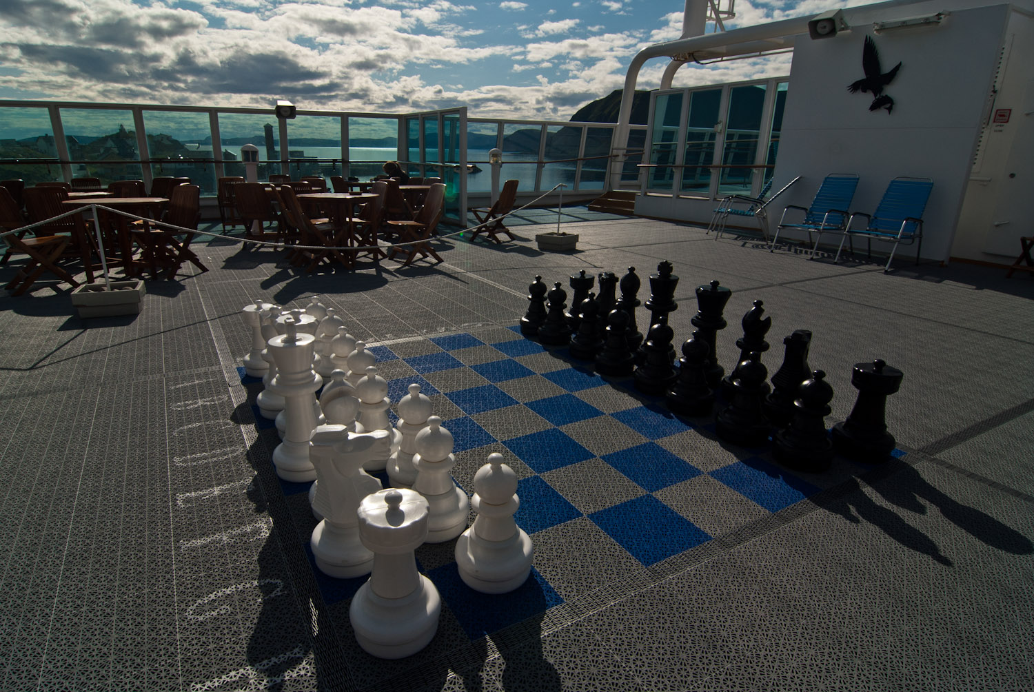 I Honningsvål hoppede jeg på Hurtigruten for 3. gang, og også denne gang var det et nyt skib – MS MIDNATSOL. Det hidtil mest moderne, med spa på soldækket. Men desværre koster det 75,- hvis jeg vil i bad (det vil jeg så ikke) og der er ikke særligt mange stik-kontakter (det er den anden ting jeg har brug for; jeg har så meget der skal lades op).