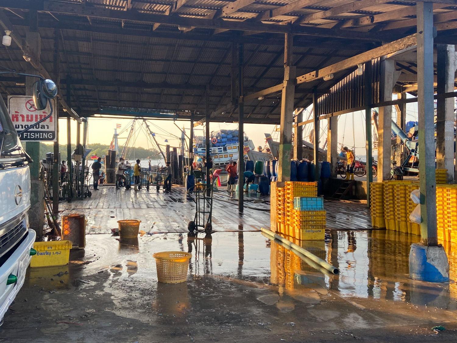 Morgenmad på hotellet (første sted jeg har haft det). Jeg elsker thai mad, men jeg var nu glad for en amerikansk morgenmad med æg, pølser og toast. Jeg fik planlagt hvilken vej jeg skal i morgen og så var jeg en tur på industrihavnen, for at se hvad der skete der.